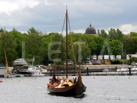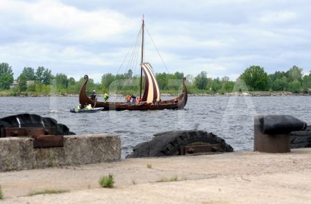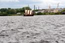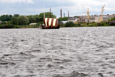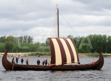 Izmēģinājuma braucienā pa Daugavu devies Latvijā būvētais vikingu ...