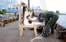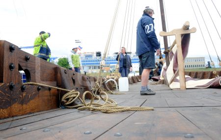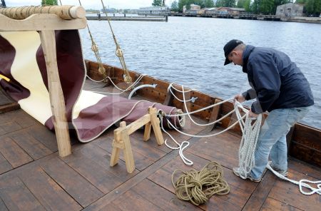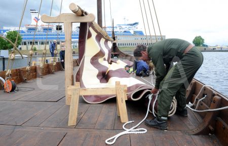 Sagatavošanās darbi uz Latvijā būvētā vikingu kuģa "Osa" pirms ...