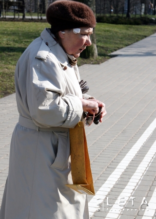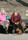 Pensionāres parkā uz soliņa bauda pavasara silto dienu.