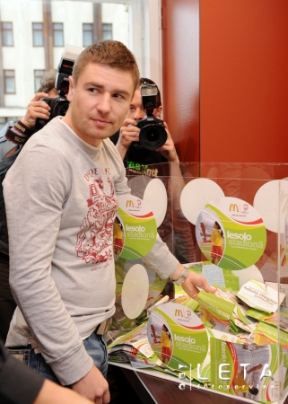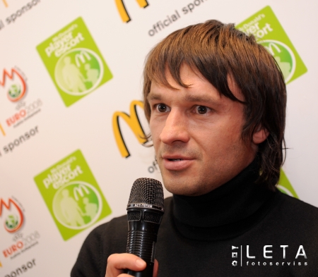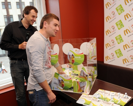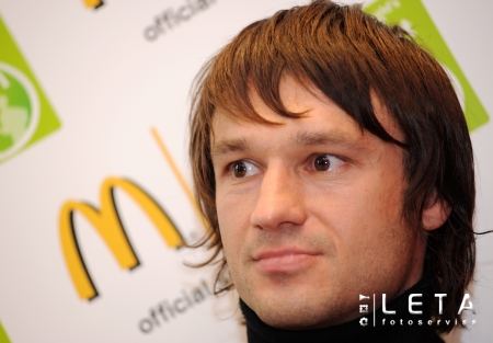 Futbolisti Marians Pahars (no kreisās), "McDonald’s" mārketinga ...