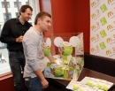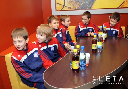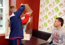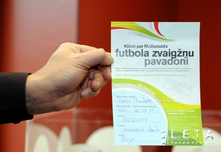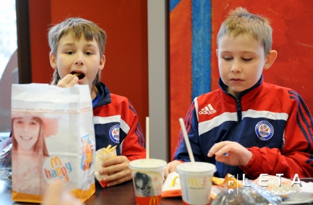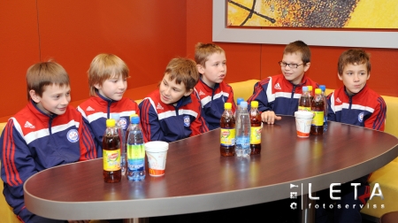 Topošie futbolisti restorānā "McDonald's" piedalās pasākumā, kurā ...