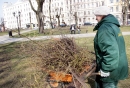 "Rīgas dārzi un parki" darbiniece sakopj apstādījumus