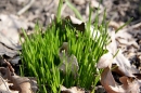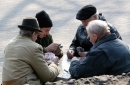 Pensionāri parkā uz soliņa bauda pavasara silto dienu.