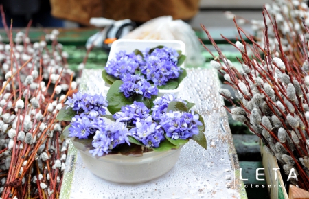 Pūpoli un vizbulītes Rīgas Centrāltirgū.