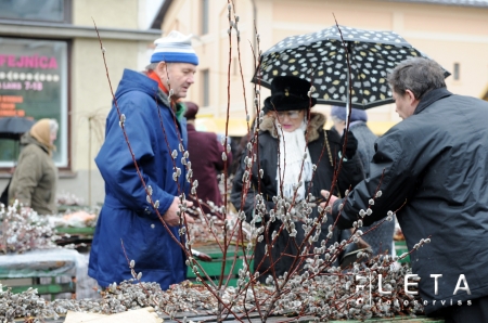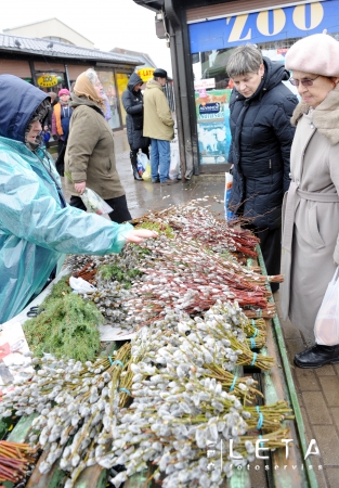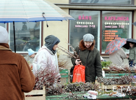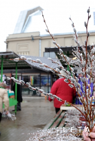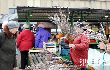 Pūpolzaru tirdzniecība Rīgas Centrāltirgū pirms Pūpolsvētdienas.