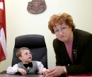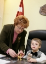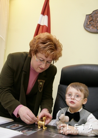 Labklājības ministre Iveta Purne un Artūrs no valsts sociālās aprūpes ...