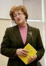 Labklājības ministre Iveta Purne sarunājas ar valsts sociālās aprūpes ...