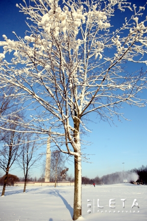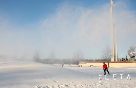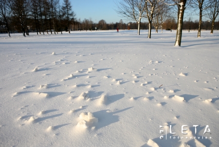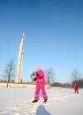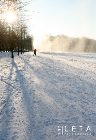 Slēpotājs distanču slēpošanas trasē Uzvaras parkā.