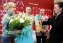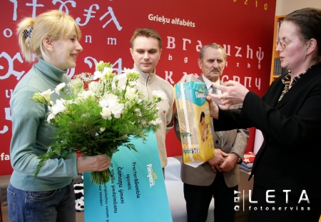 Trīnīšu vecāki Žanna un Nikolajs Čamaņi un vectēvs saņem apsveikumus ...