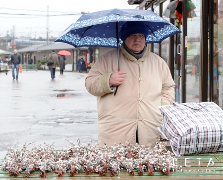 Pūpolzaru tirdzniecība Rīgas Centrāltirgū pirms Pūpolsvētdienas.