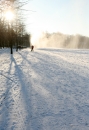 Slēpotāji distanču slēpošanas trasē Uzvaras parkā.