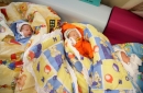 Trīnīšu māte Žanna Čamane ar trīnīšiem - meitenītēm Silviju un Nikolu ...