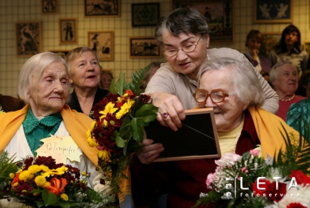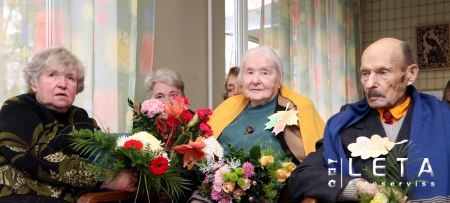 Simtgadniece Pelageja Kļaviņa ar ziediem ceturtā simtgadnieku ...