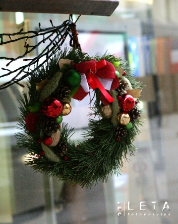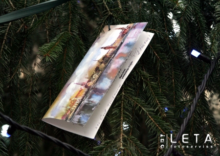 Apsveikuma kartiņa Ziemassvētku eglē Doma laukumā.