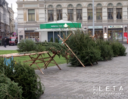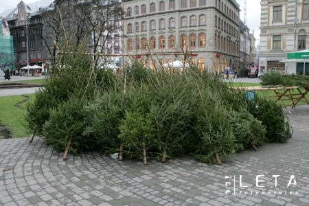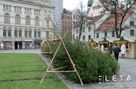 Ziemassvētku eglīšu tirdznecība Līvu laukumā.