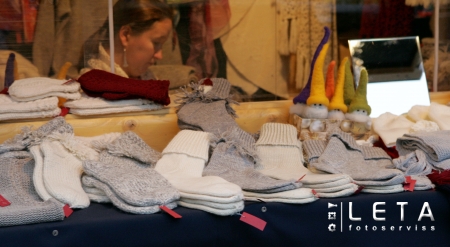 Adījumi Ziemasvētku tirdziņā Doma laukumā.