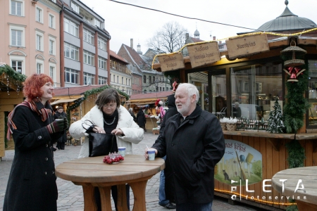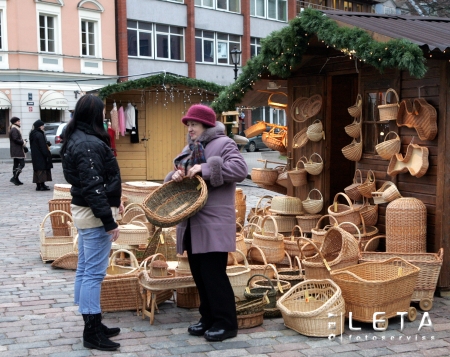 Amatnieku darinājumi Ziemasvētku tirdziņā Doma laukumā.