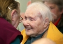 Rīdziniece Marta Vabule saņem tuvinieku apsveikumus 108. dzimšanas ...