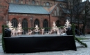 Doma laukumā iekārtota skatuve Ziemassvētku pasākumiem.