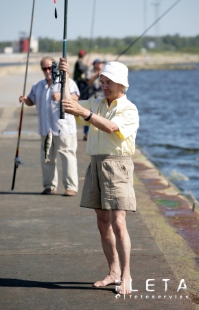 Makšķernieki Daugavmalā uz Ziemeļu mola Mangaļsalā.