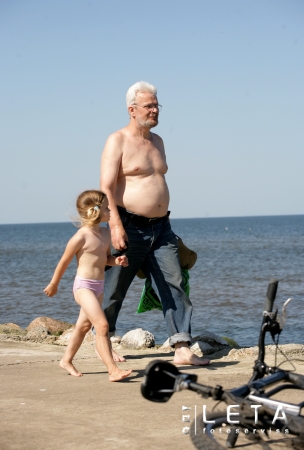 Cilvēki karstā dienā uz Ziemeļu mola Mangaļsalā.