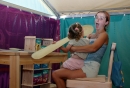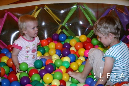 Bērni rotaļājas pie tirdzniecības parka "Alfa" iekārtotajā "Pampers" ...