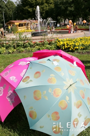Lietussargi un strūklaka Esplanādē, kur notiek bioloģisko produktu ...