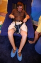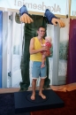 Vīrietis iejūtas palielinātā mazuļa auto sēdeklītī "Pampers" mājā, ...