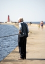 Makšķernieks Daugavmalā uz Ziemeļu mola Mangaļsalā.