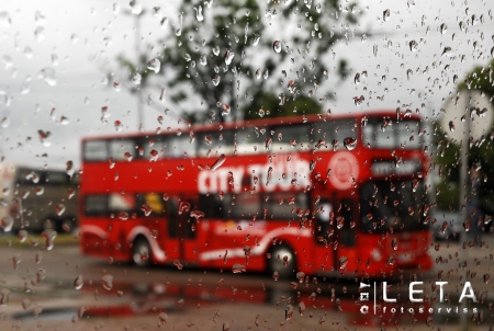 Skats caur lietus lāsēm klāto logu.