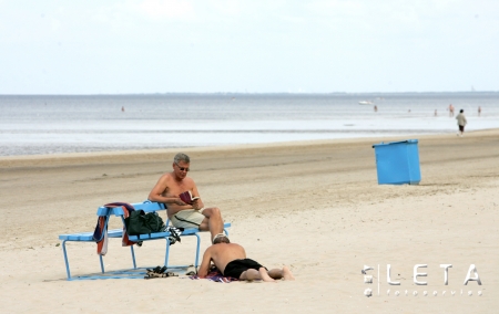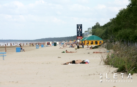 Atpūtnieki vasaras dienā jūrmalā Dubultos.