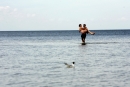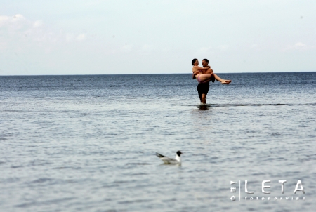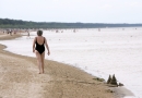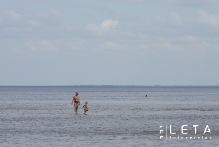 Cilvēki jūrā pie Dubultiem.