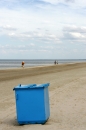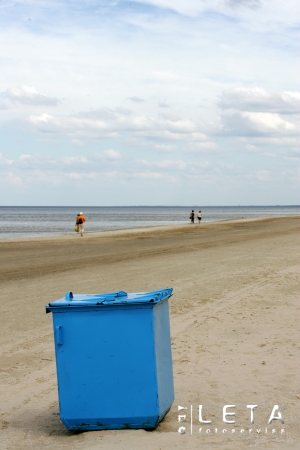 Jūras krasts un atkritumu tvertne.