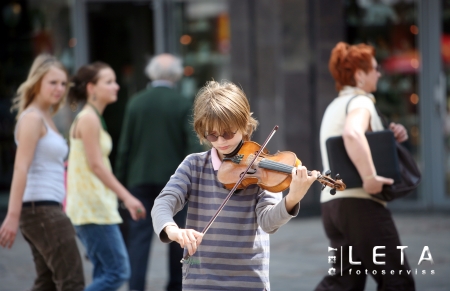 Zēns spēlē vijoli pie "Hotel de Rome".