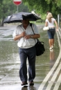 Īslaicīgs atspirdzinošs lietus pārsteidz rīdziniekus.