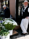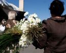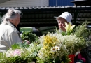 Sieviete ar ziedu pušķi Rīgas Centrāltirgū.