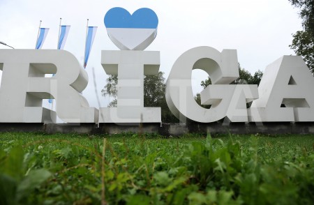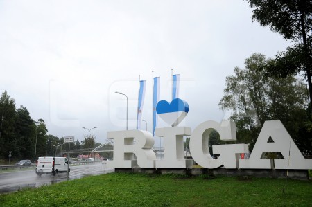 Надпись "Рига" с сердечком в цветах флага латвийской столицы