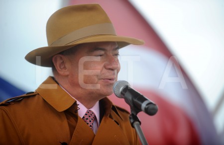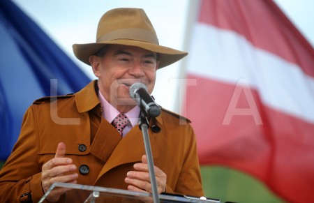 Президент Андрис Берзиньш выступает у памятника Свободы