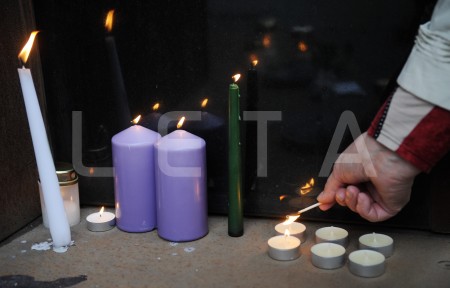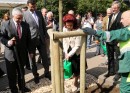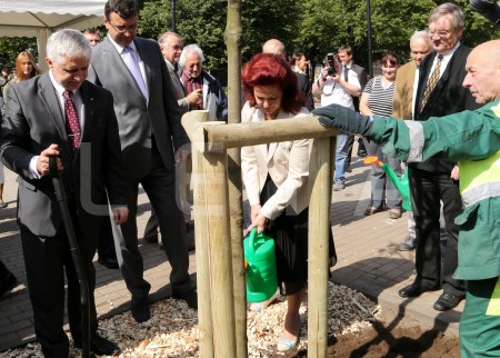Спикер Сейма Солвита Аболтиня поливает дерево балтийского единства, ...