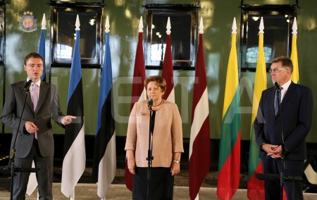 Премьер-министры Эстонии Таави Рыйвас (слева), Латвии Лаймдота ...