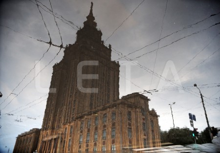 Здание Академии наук Латвии. Отражение в луже