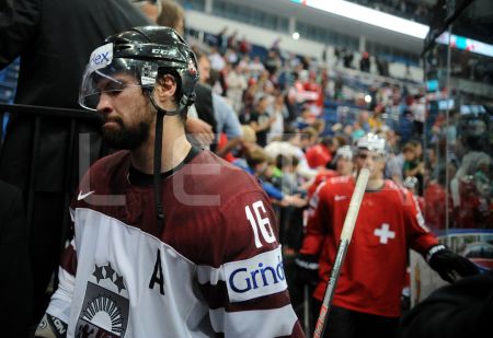Игрок российской сборной Каспар Даугавиньш после матча со Швейцарией ...