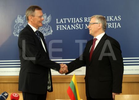 Министры финансов Латвии Андрис Вилкс (слева) и Литвы Римантас Шаджюс