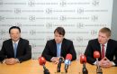 Посол Китая Ян Гоцян (слева), глава "Латвияс дзелцельш" Угис Магонис ...