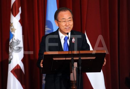 Президент Латвии Андрис Берзиньш и генеральный секретарь ООН Пан Ги ...
