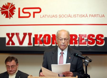 Лидер СПЛ Альфред Рубикс выступает на съезде партии