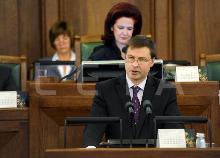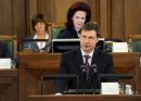 Премьер-министр Валдис Домбровскис выступает в Сейме