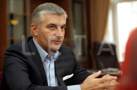 Премьер-министр Валдис Домбровскис выступает на торжественной линейке ...
