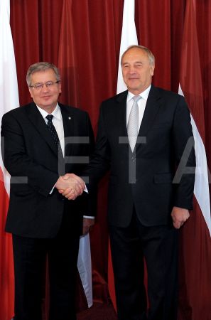 Президент Польши Бронислав Коморовский и президент Латвии Андрис ...