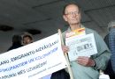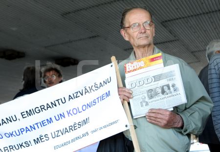 Участник пикета у Музея оккупации